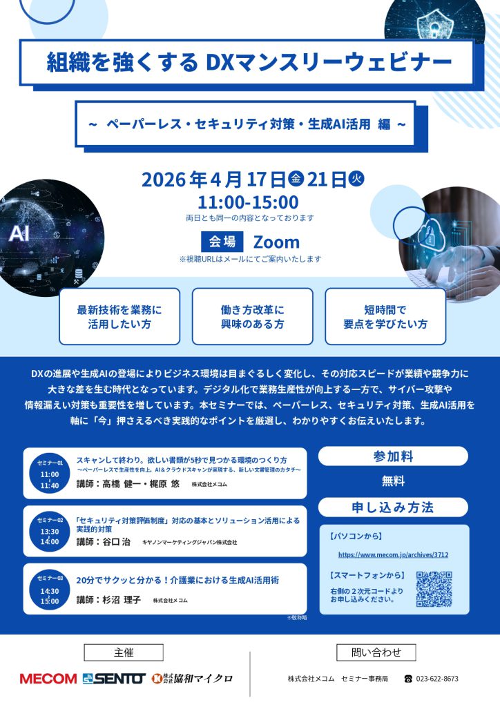 組織を強くする DXマンスリーウェビナー ~ペーパーレス・セキュリティ対策・生成AI活用編~