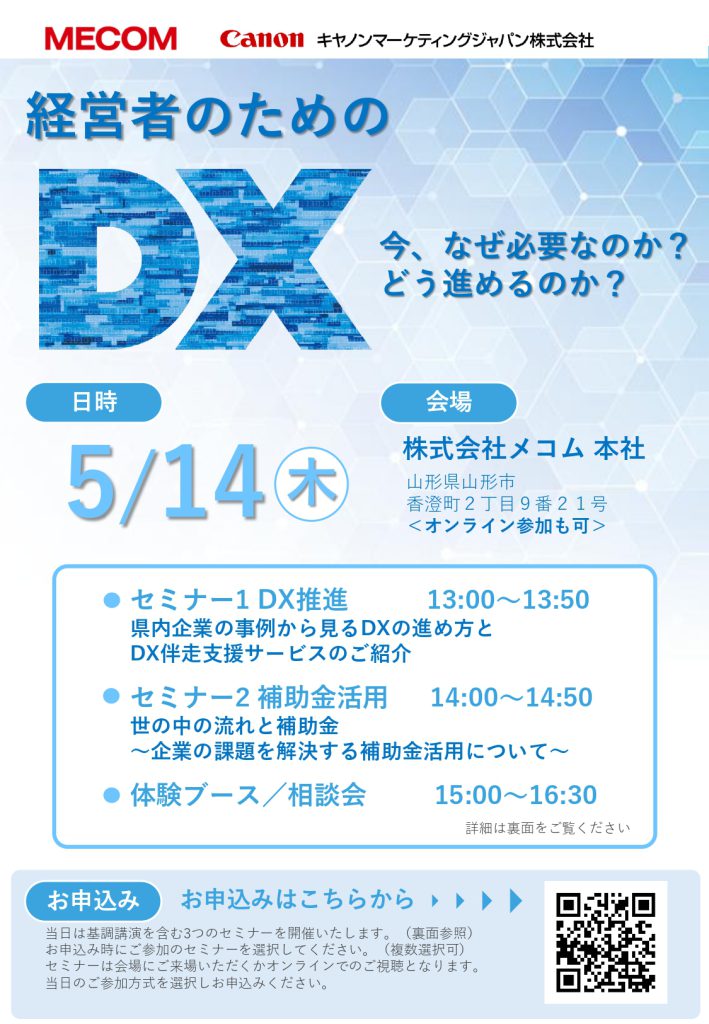 DX(デジタルトランスフォーメーション)の重要性がますます高まる中、実際にどのように取り組むべきかを知りたい経営者や企業関係者のためのセミナー&体験イベントを開催します。本イベントでは、山形県内の先進事例を紹介しながら、実践のポイントや、補助金を活用方法など、幅広い情報を提供します。